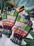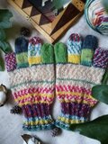 春の花をまとめた花束のような、手編みのスマホ操作対応5本指手袋です。