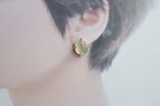 葡萄石とも呼ばれる、マスカットカラーのプレナイトを真鍮で留めたピアスです。