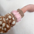 モノトーンとカフェオレのギンガム、桜色、水色 で作ったアームバンドです。