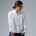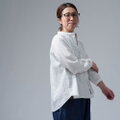麻 Linen リネン リネンシャツ リネンブラウス シャツ ブラウス 長袖 スタンドカラー 立て襟 無地 無地シャツ ロングシャツ オールシーズン 春 夏 秋 冬 ママ 着こなし コーデ ホワイト 白 白色