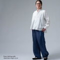 【soco】ふわっと心地いい デニムボールパンツ / ダークインディゴ b014s-din3wafuさんのパンツは3本目になりましたが、初めてのデニムです。 年齢とともにデニムが難しく感じるようになり、いつの間にかワードローブからデニムが消えていました。 久しぶりのデニムはダボッとして着心地がよく、カジュアルすぎず、とてもいい感じです。