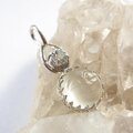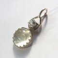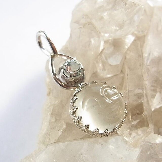笑顔が彫り込まれた神秘的な輝きのムーンストーンに小粒のアクアマリンを組み合わせた