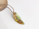 ガラスと銀箔のペンダント(みどり色)緑の半月のような美しさ。見入ってしまいます。