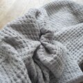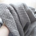 ワッフル織りは蜂巣織(はちすおり)とも言い、その名の通り蜂の巣のようなぽこぽことした表情が可愛い印象の生地です。