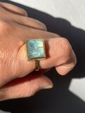 ルチルクォーツ × シーブルーカルセドニー ダブレット 長方形 立体的カット
