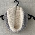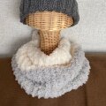 ほわっほわで、ふんわりスヌードのオフホワイト、グレーのツートンが出来ました。