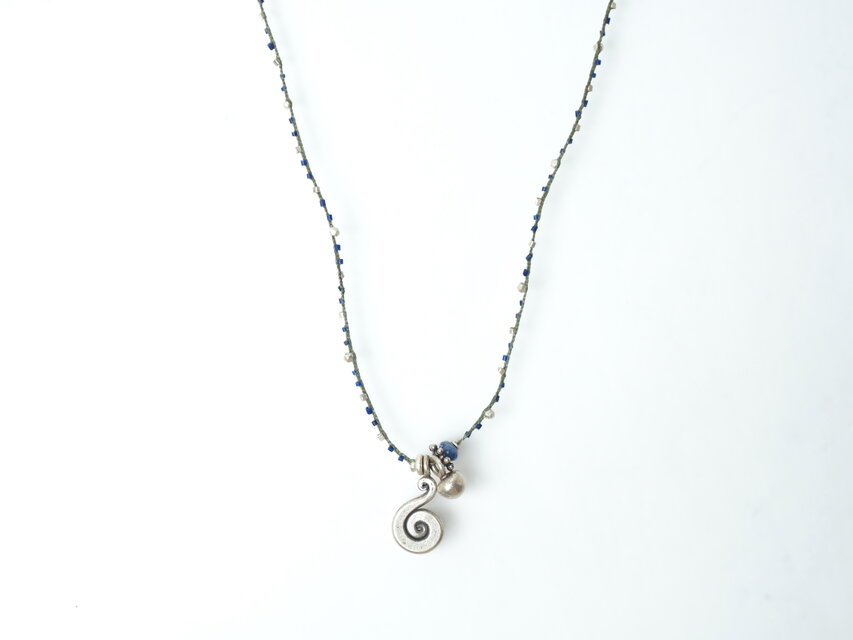 個性的な渦巻きチャームとラピスラズリが程よくカジュアルな印象のデザイン