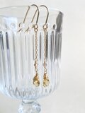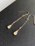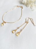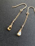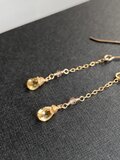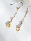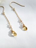 キラキラと煌めく美しい宝石質のシトリンと、極小のブラウントパーズを繊細なチェーンで揺らした大人のピアスです。