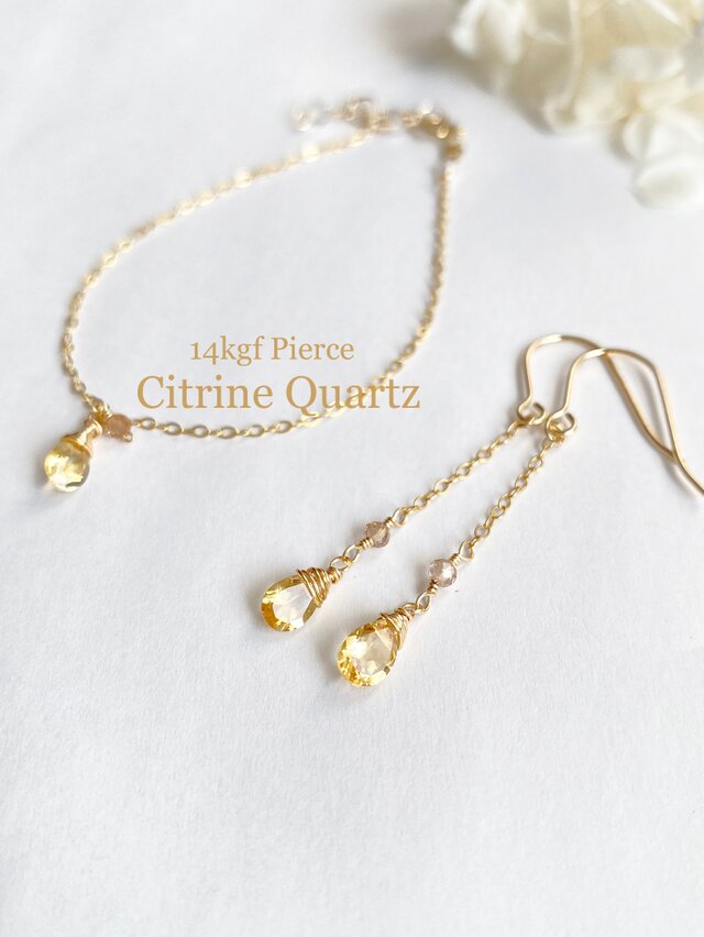 【11月誕生石】宝石質シトリンの揺れるファセットピアス 14kgf pierce ac/1122