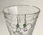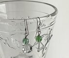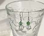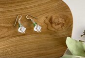 鮮やかなグリーンのフローライトとスクエアカットの水晶を繋いだシンプルなピアスです。