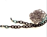 ポリエステルの糸を巻いてつくった サテンのチェーンのように見えるチェーン(10~12mm)で メガネチェーンを作りました。