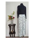 99 染大島紬 ワイドパンツ モデルチェンジ ブルー系 花柄 ロングパンツ テーパードパンツ