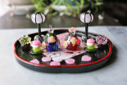 雪洞や菱餅、桜橘なども全てガラスでひとつひとつ丁寧に制作いたしました。