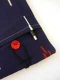ボタンで留めるようになっています。ボタンは紅いシェルボタンを使用。