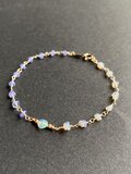 キラキラと輝く宝石質のタンザナイトと、虹色の遊色がみられるプレシャスオパールのブレスレットです。