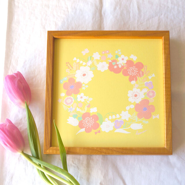 砂糖菓子のようなパステル色のリースが甘やかな「ミモザ」。
