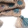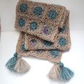 昔ながらのかぎ針編みの「グラニースクエア」のモチーフ繋ぎのストールです。