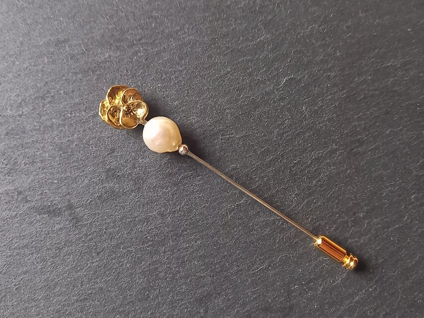 Utoka ☆ brass パンジーとあこやパール ピンブローチ