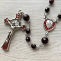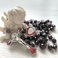 カットがほどこされキラキラ輝くガーネット6ミリ珠と8ミリ珠を使用したロザリオです。