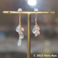 もう片方はピアスにチェーンを下げ、スカイカイヤナイトを3個サイズグラデーションで下げ、その中間にインカローズとジルコンを下げました。