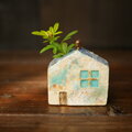 屋根に小鳥がとまった家の形の一輪挿しです。