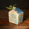 屋根に小鳥がとまった家の形の一輪挿しです。
