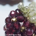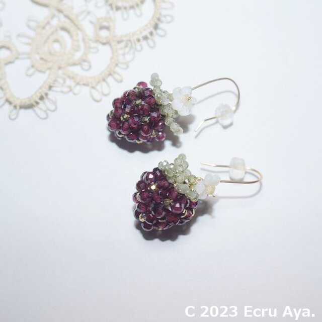 果肉をイメージしましたガーネットと、種をイメージしましたヘマタイトで編みました。
