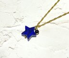 存在感のある少し大きめで厚みのあるウルトラマリンブルーの星形ラピスラズリと漆黒の小粒モリオンを組み合わせたデザインネックレス。