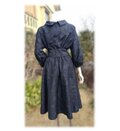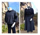 37 大島紬 着物アップサイクル レトロモードセットアップ ドレス ツーピース フォーマル パーティ 黒×紺/葡萄柄