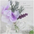 お花はすべてアーティフィシャルフラワーで、スイートピー、ラベンダーのお花にハーブのグリーンを添えて…