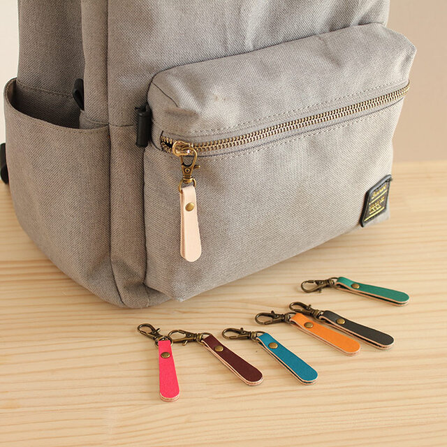 ファスナースライダーに付いているツマミ(引き手)をレザーで作りました。