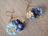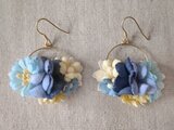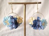 このタイプのフープのピアスは裏も見えるので裏にも染め花をつけています。とても華やかでイベントなどでも人気の作品です。