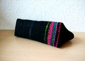 手織り裂き織りペンケース 黒地に赤B (綿とシルク、ファスナー18cm)