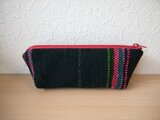ところどころに裂き織り(シルク)の入った手織りペンケースです。