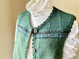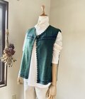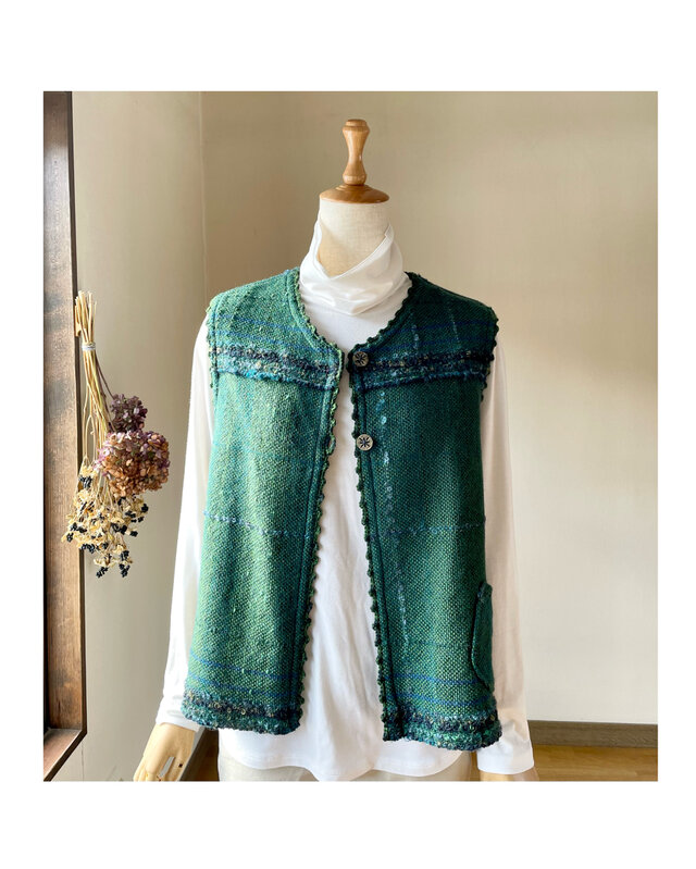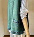 ブルーがかったグリーンのウールで織った 厚地の手織りのベストです。