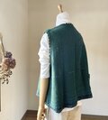 前をとじずにあけて着るタイプのベストです。下に着るブラウスやワンピースとの組合せを楽しんでください。