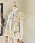 オフホワイトにダークグレーのスラブ糸を格子状に織り込んだ手織りのベストです。