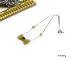 ビーズ,ビーズアクセサリー,ビーズアクセ,ビーズネックレス,ネックレス,リボン,スワロ,トパーズ