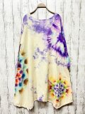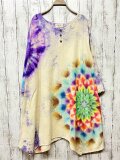 タイダイ染め 新型ヘンリーネック長袖ワンピース 空と風を映す湖面に咲く、優しい華のような幻想的な大曼荼羅 HD18-62