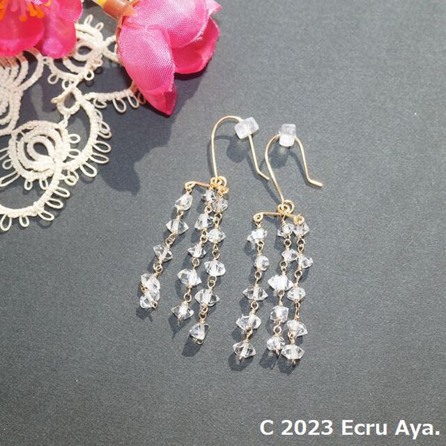 #Ecru #天然石 #ピアスチャーム #ピアス #ハーキマーダイアモンド #ハーキマーダイヤモンド #シャンデリアピアス #Ecru_新作