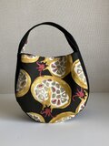 インポートのオシャレなザクロ柄の生地と麻(ブラック)の生地を使って