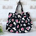 【Lサイズ】モダンヒゲナシ花柄 綿麻グラニーバッグ ブラック <A4サイズ入ります>