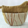 ほっこりするリメイク鳥さんオーブンミット(プリント、染色mix生地が楽しい鳥さん鍋つかみ)