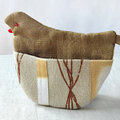 造っていく中でしみじみ感じたのは、芯地や中綿のキルティング加工、内側の生地やポケット布、鳥の身体布部分などそれぞれ異なる生地を使用している為縫い方を微妙に調整しつつ縫製しています。一つ一つ手造りでもあり、時間を要しますがしっかり使える商品にしていこうと思っております