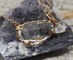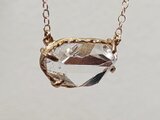 極めて透明度の高いNY州産ハーキマーダイヤの14kgfネックレス*氷のような雰囲気の変則的なフォルムでとても光輝が強い結晶をお楽しみ下さい*NY州産ハーキマーダイヤは人気と相反する産出減により綺麗なものほど入手困難となっております*石座は925/K14gpの土台に14kgfツイスト線を加えたアンティーク調のデザイン*14kgfは真鍮を芯に14金の被覆が施され比較的アレルギーリスクが低く気軽にゴールドの輝きを楽しめるとして人気の素材となっております*