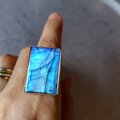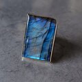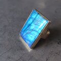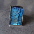 角度によって美しく強いブルーのシラーが浮かぶラブラドライトをシルバーリングに仕立てまた。