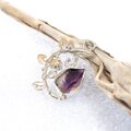 アメジスト原石とモアサナイトの蔓飾りペンダント 天然石アクセサリー 一点物