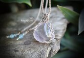 大粒★虹入り★ローズクォーツ マクラメネックレス930