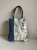 シックで落ち着いた花柄のインポート生地と無地(フォグブルー)の生地を切り替えて