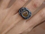ブラジル産のタイチンルチルクォーツをロウビキ紐を使ってマクラメ編みした指輪(リング)です。